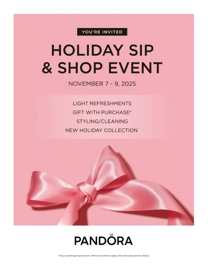 Enjoy exclusive gifts, light refreshments, and a sneak peek at our holiday collections from Pandora and Swarovski.