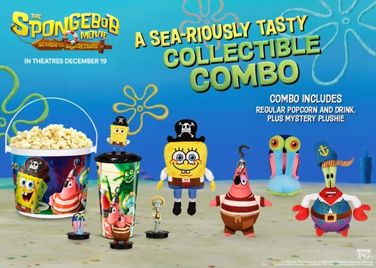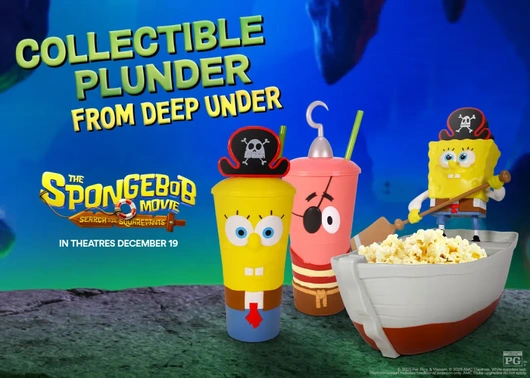 Get tickets to THE SPONGEBOB MOVIE: SEARCH FOR SQUAREPANTS and sail off with a ship ton of collectibles, including our Grippr® cups + toppers with a large drink and boat bucket with a large popcorn, available 12/18 while supplies last.